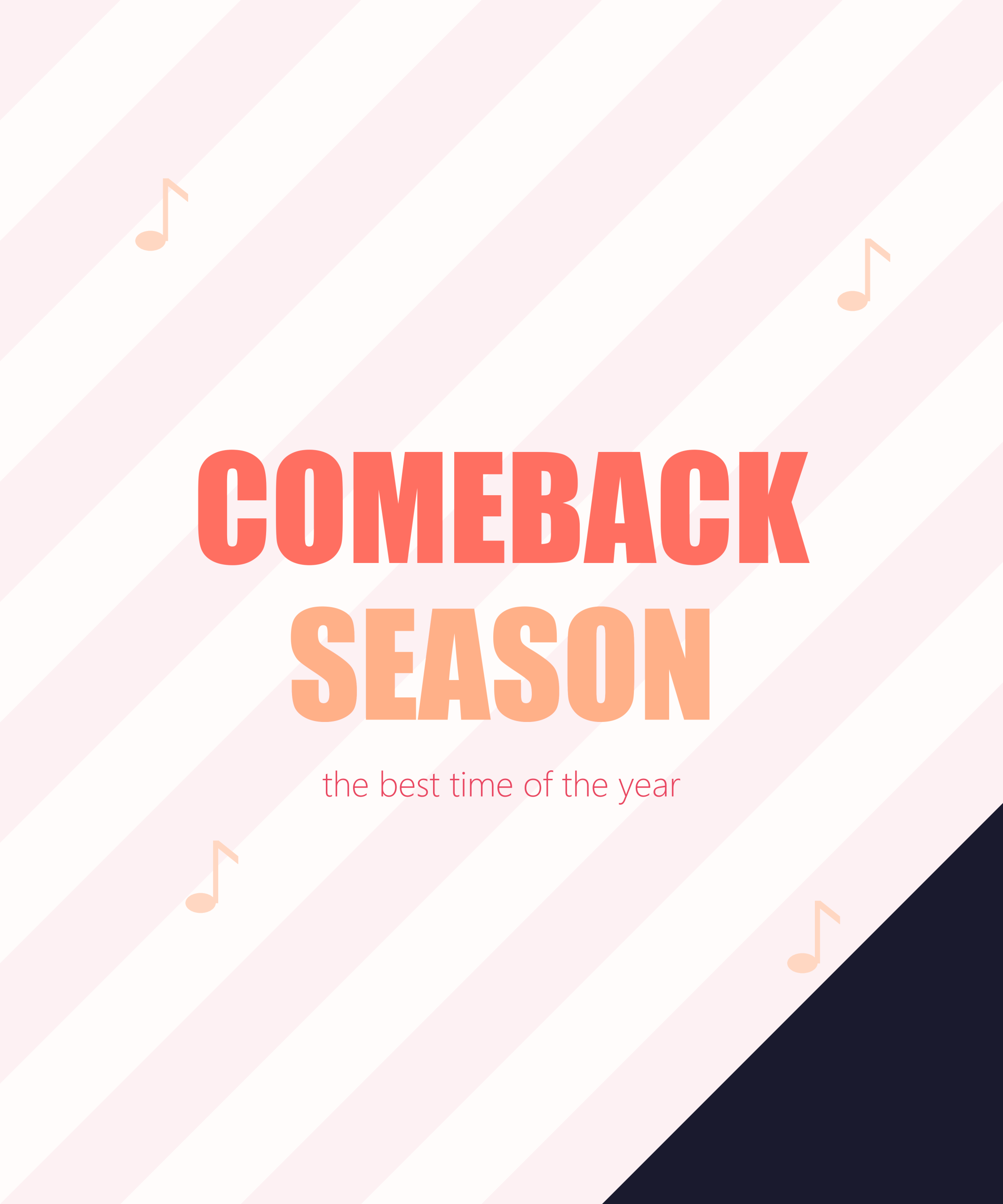 Comeback season is the best season. Vibrant design celebrating the excitement of K-pop comeback announcements.