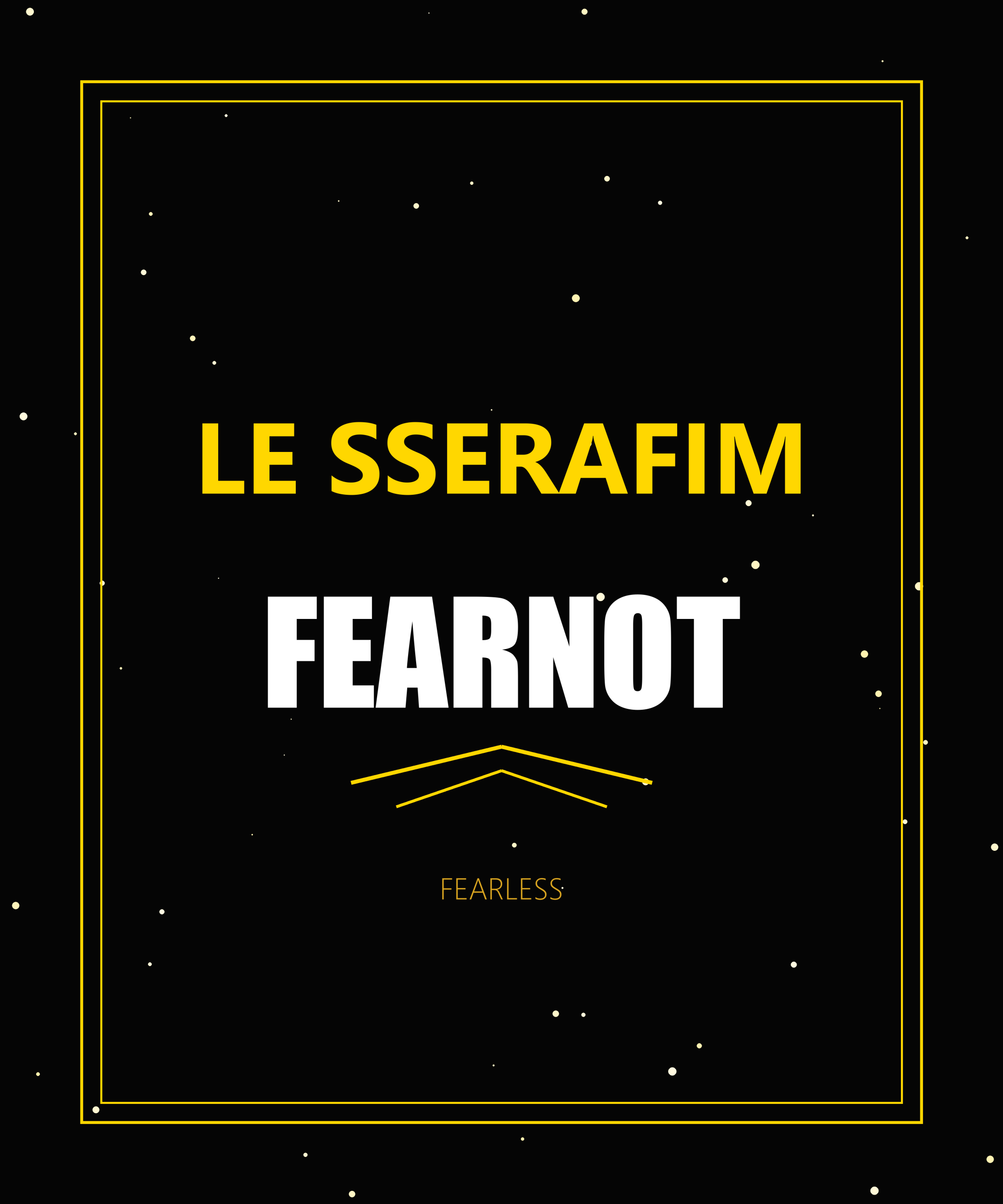 Fierce black and gold LE SSERAFIM FEARNOT design with wing motifs. Fearless energy.